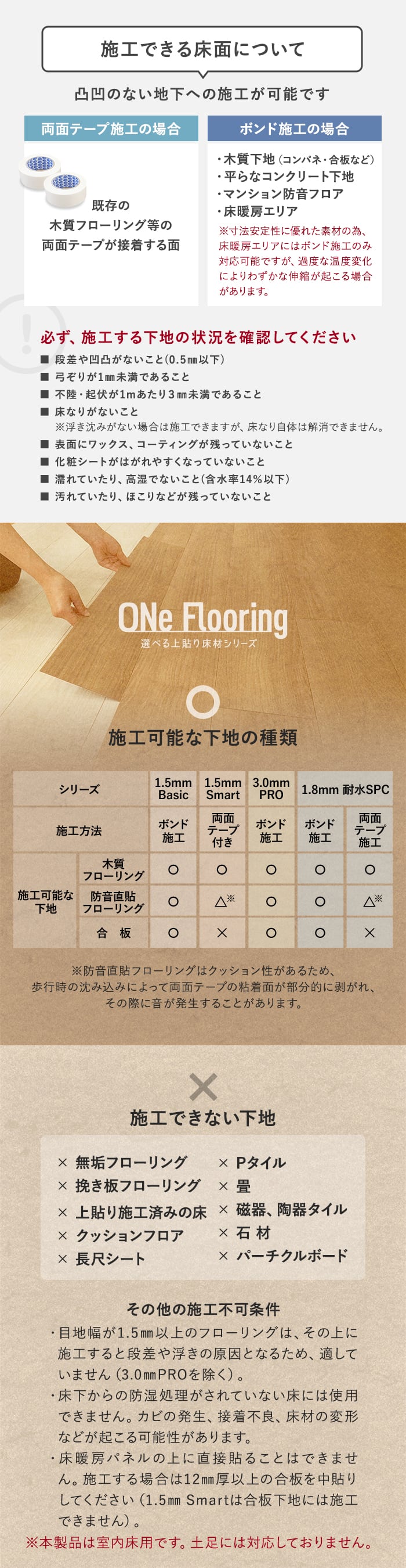 貼れる下地・貼れない下地と施工上の注意 >