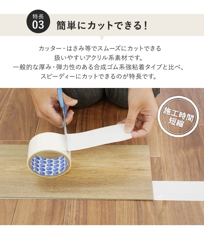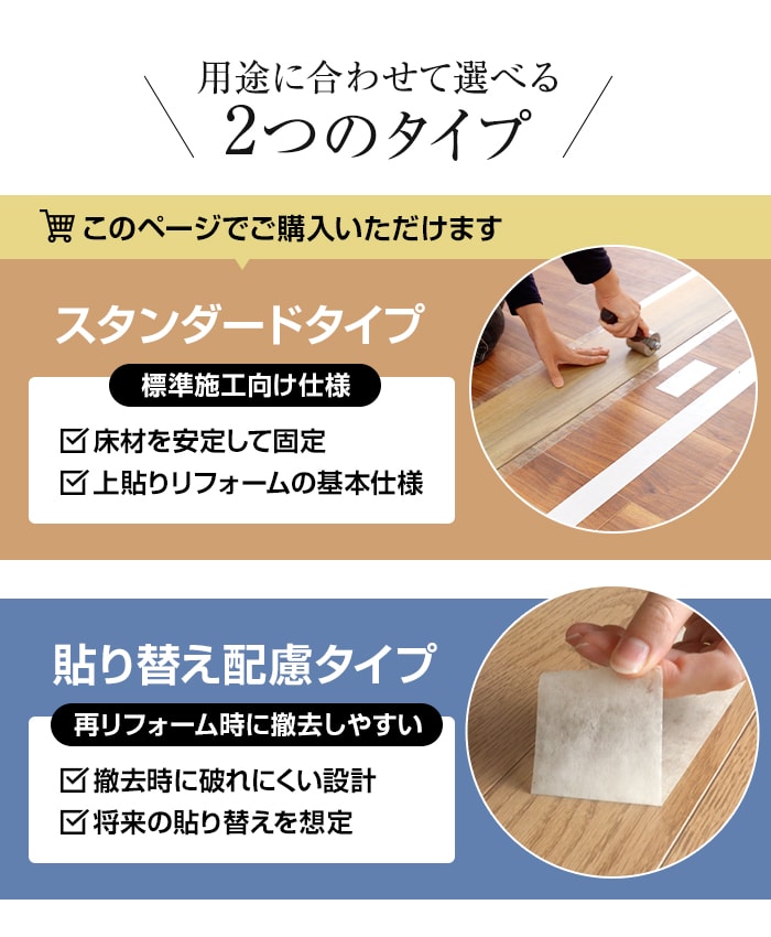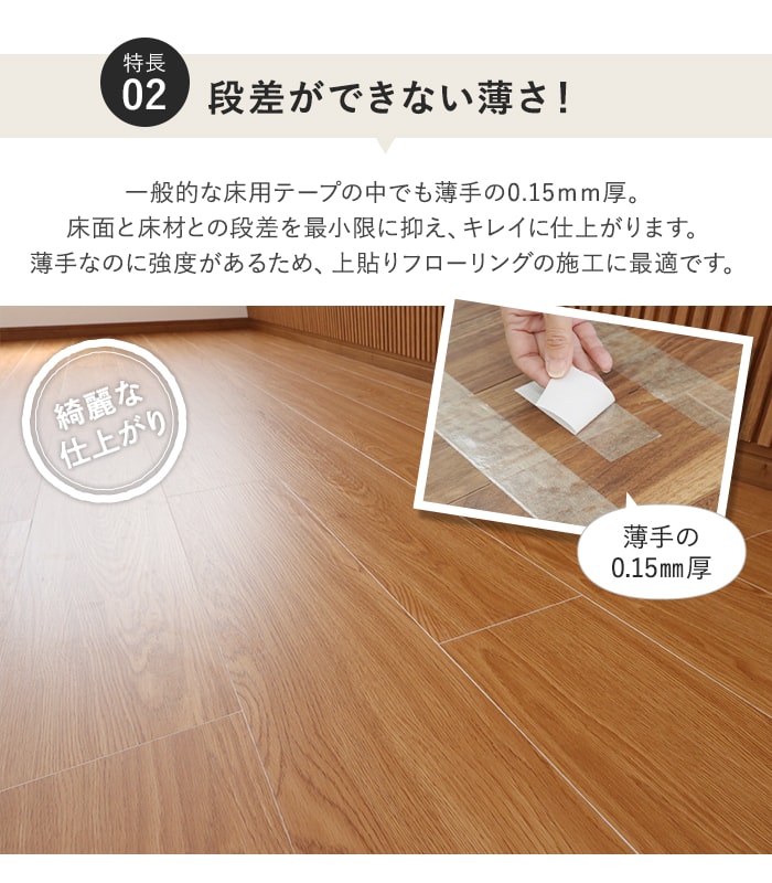 薄型フローリングの上貼り施工に最適な両面テープです。