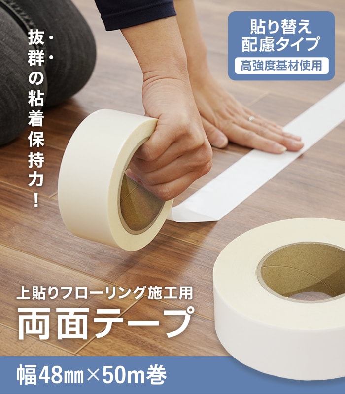 上貼りフローリング 施工用 両面テープ 貼り替え配慮タイプ(幅48mm×25m巻)