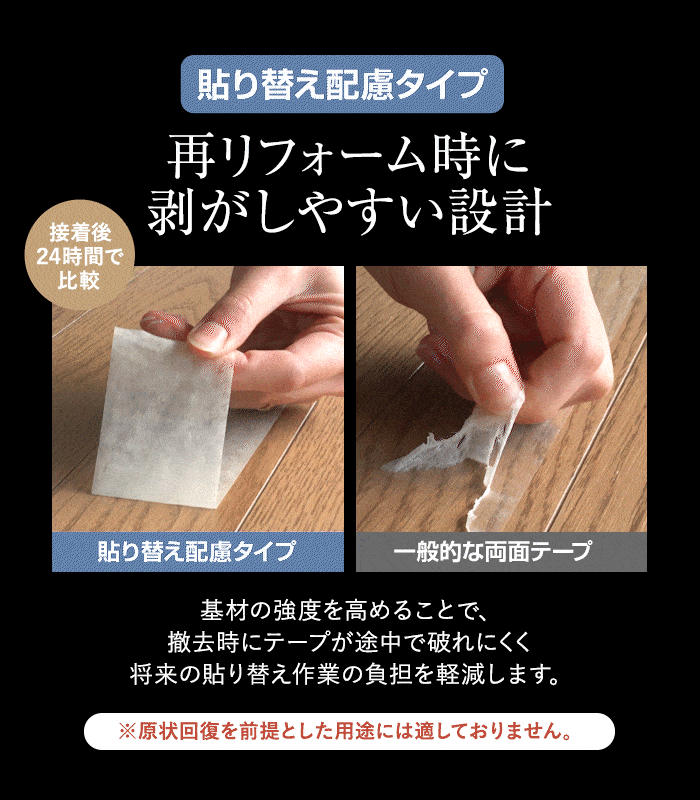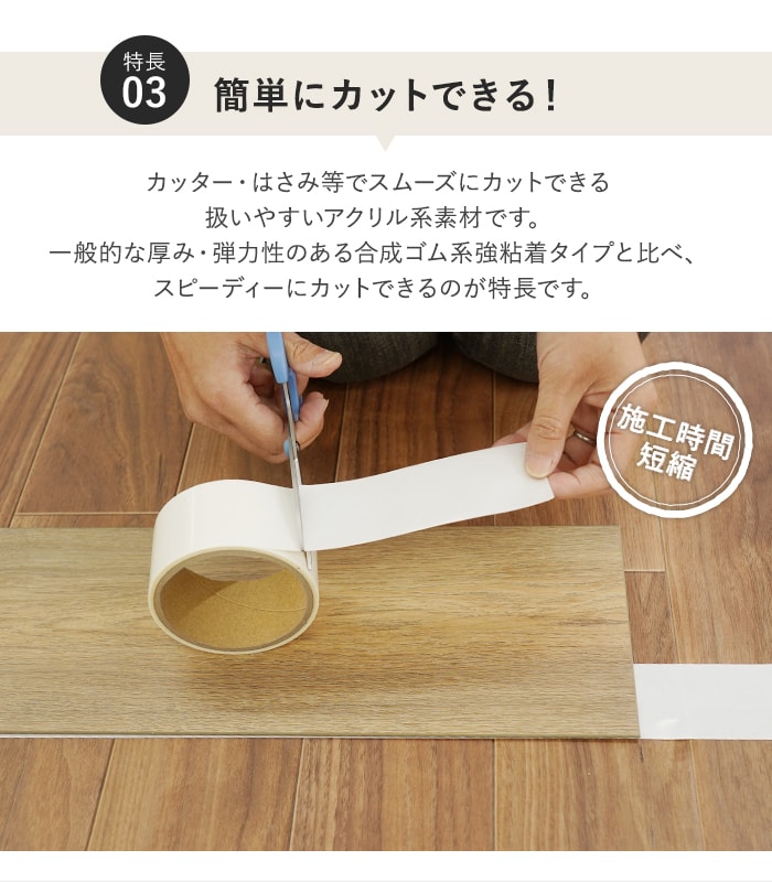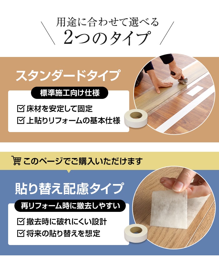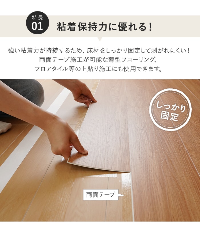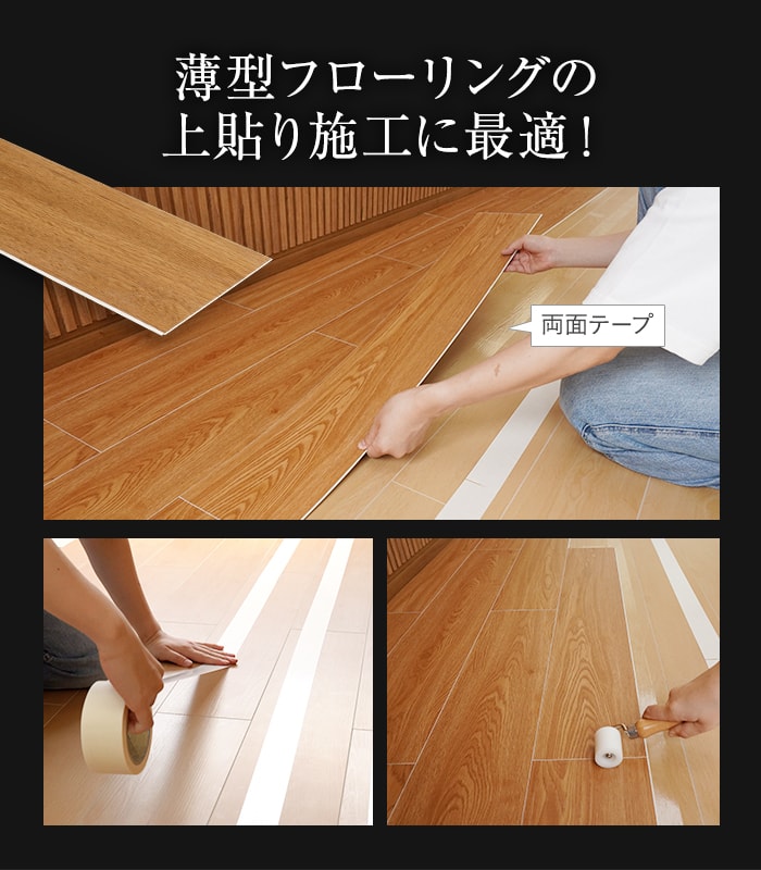薄型フローリングの上貼り施工に最適な両面テープです。