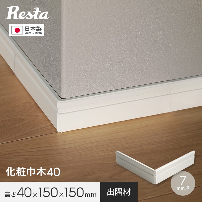 巾木 化粧巾木40用 出隅 コーナー部材 1個 白