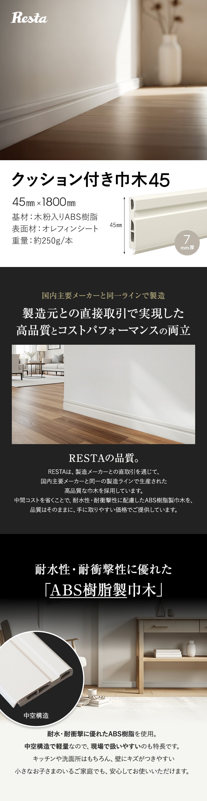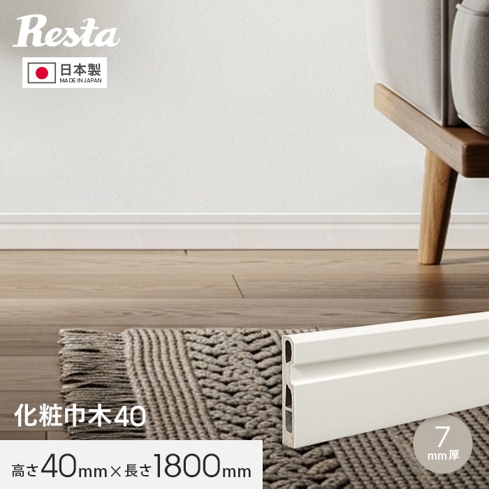 巾木 化粧巾木40 高さ40mm 厚さ7mm 長さ1800mm 1本 白