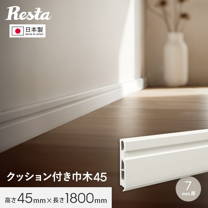 巾木 クッション付き巾木45 高さ45mm 厚さ7mm 長さ1800mm 1本 白
