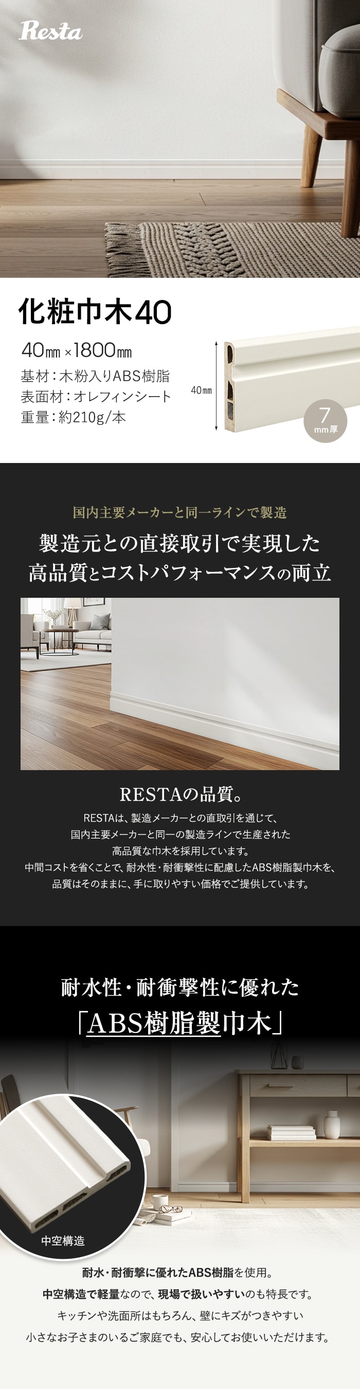 巾木 化粧巾木40用 出隅 コーナー部材 1個 白
