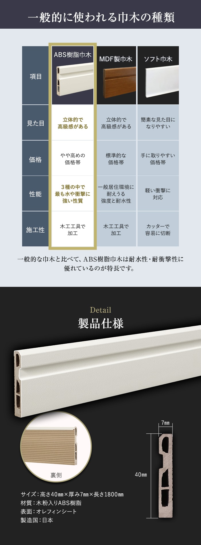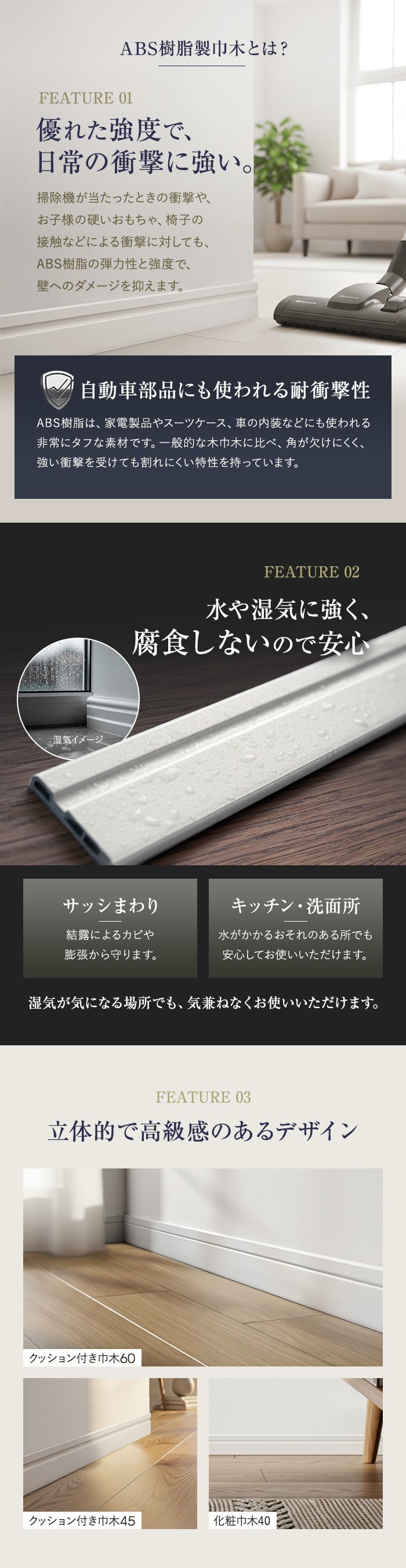 巾木 クッション付き巾木45 高さ45mm 厚さ7mm 長さ1800mm 1本 白
