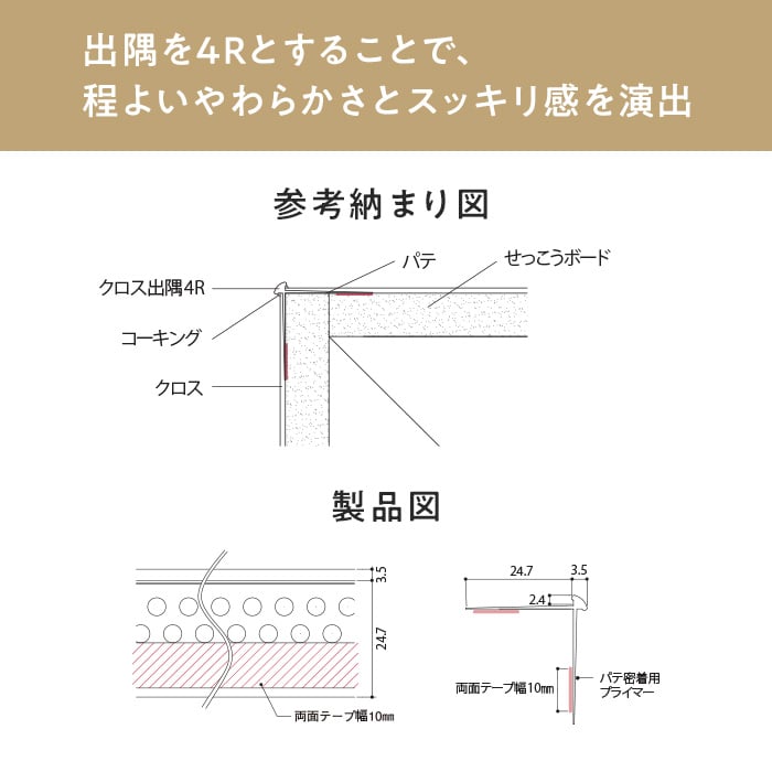 • 見切り材 壁 フクビ クロス出隅4R 50本入 CD4R25W