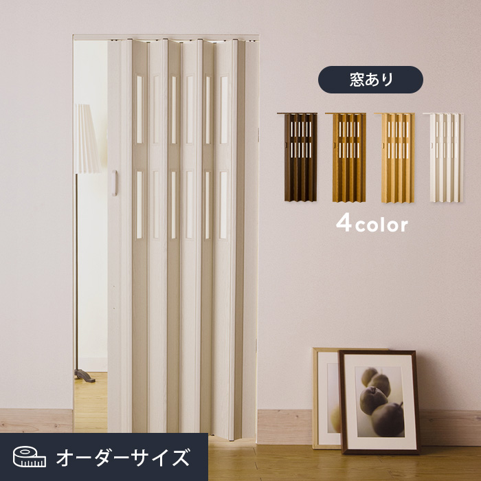 パネルドア 間仕切り クレア 窓ありタイプ 木目調 4color オーダーサイズ「レールの長さ148〜159cm×製品高さ181〜200cm」__panel-door-mado-a