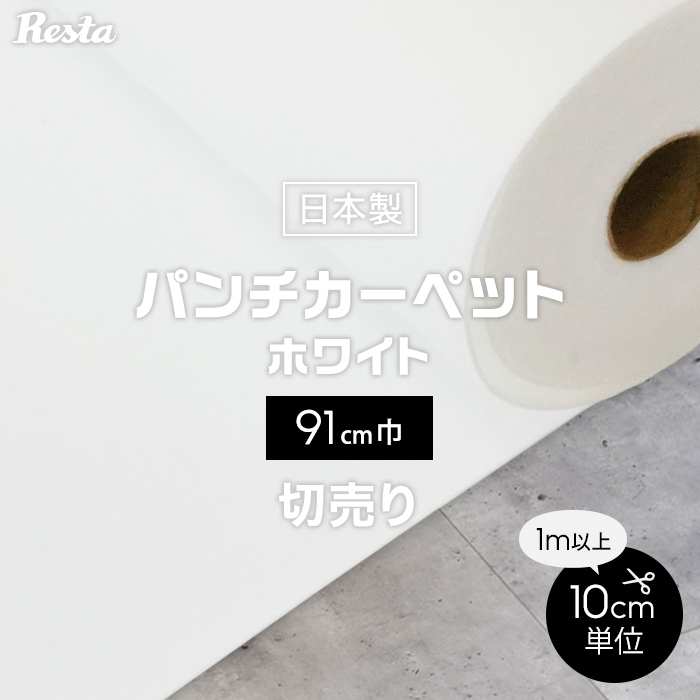 パンチカーペット 切り売り ホワイト 白 91cm巾 日本製 RESTAオリジナル