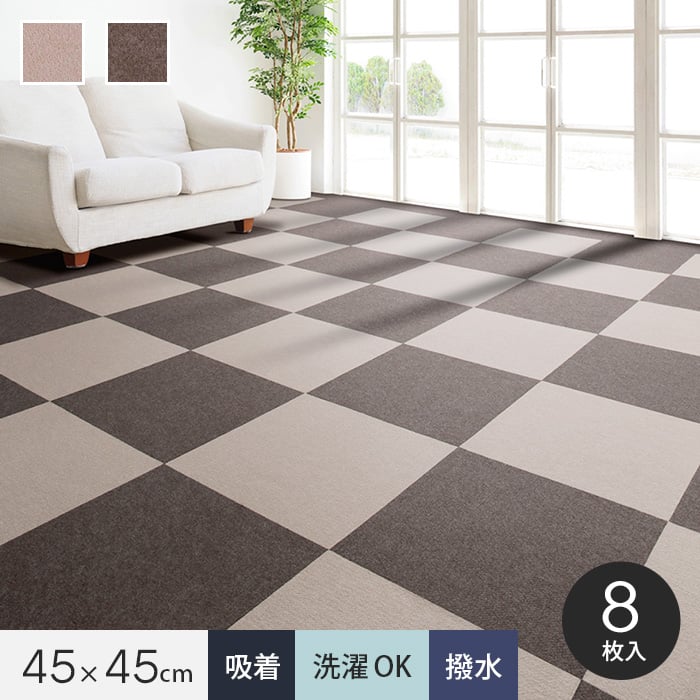 裏ピタ加工!! 洗えるお手軽吸着カーペット 45角マット(8枚入) (45×45cm)