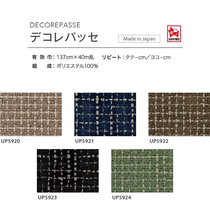 サンゲツ「デコレパッセ」。太番手糸で織り上げた温かみある風合いで北欧風に最適。自動車用難燃対応の137cm巾ポリエステル100%生地。