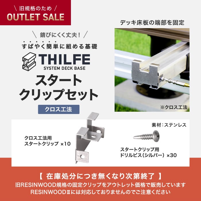 ウッドデッキ 部材 【旧RESIN WOOD規格アウトレット】 THILFEクロス工法スタートクリップセット プロテクト専用