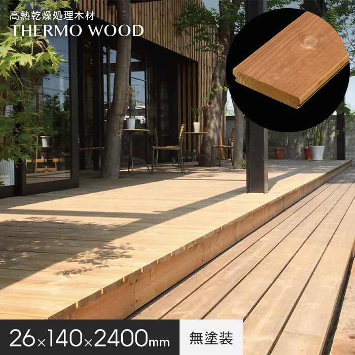 ウッドデッキ サーモウッド TP2 無塗装 26×140×2400 スマートデッキング対応