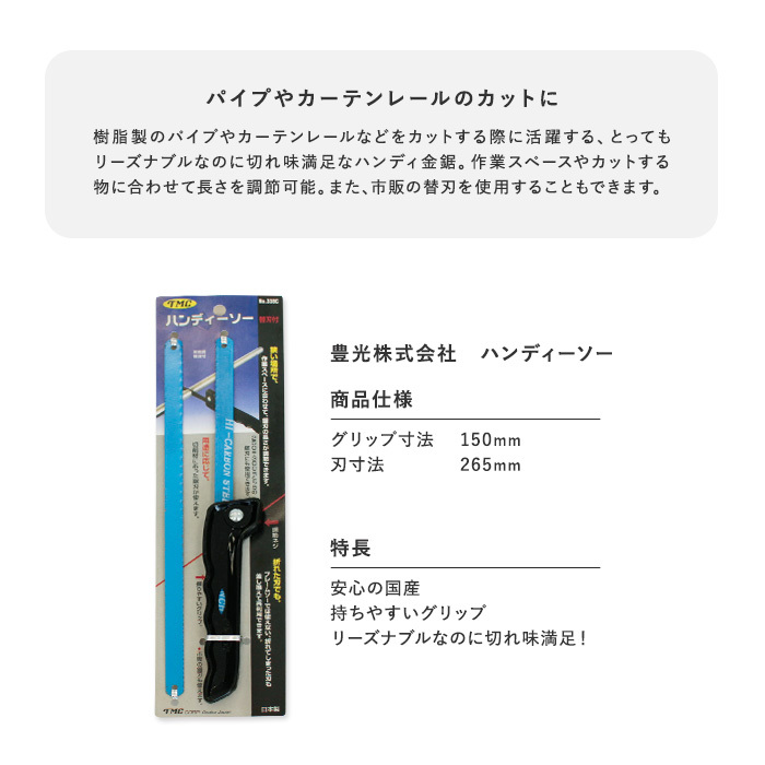 用途に応じて刃を替えられる 日本製ハンディーソー替刃付