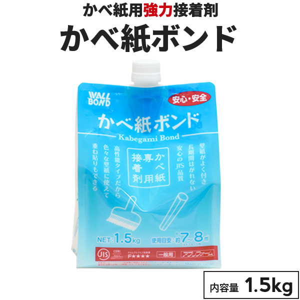 壁紙ボンド (壁紙用強力接着剤 1.5kg ) 約7〜8平方m 水溶性 防カビ剤入り ボンド のり 接着剤 壁紙のり 石膏ボード、木材、モルタル、漆喰、砂壁