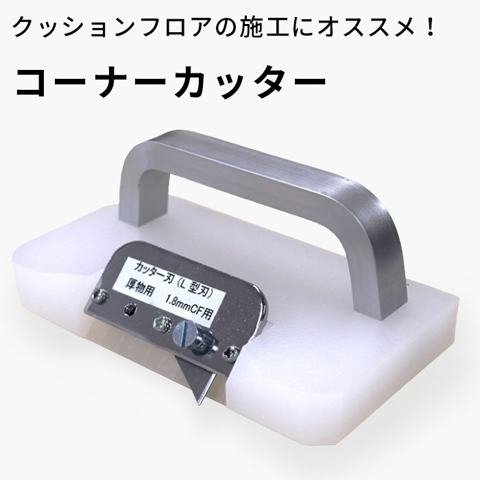 | 使用方法 | ▪床材を壁際まで正確に敷く為に使用します。 ・手のひらでコーナーを押さえ込み壁面に沿わせ、右から左へと滑らせてカットする。 |