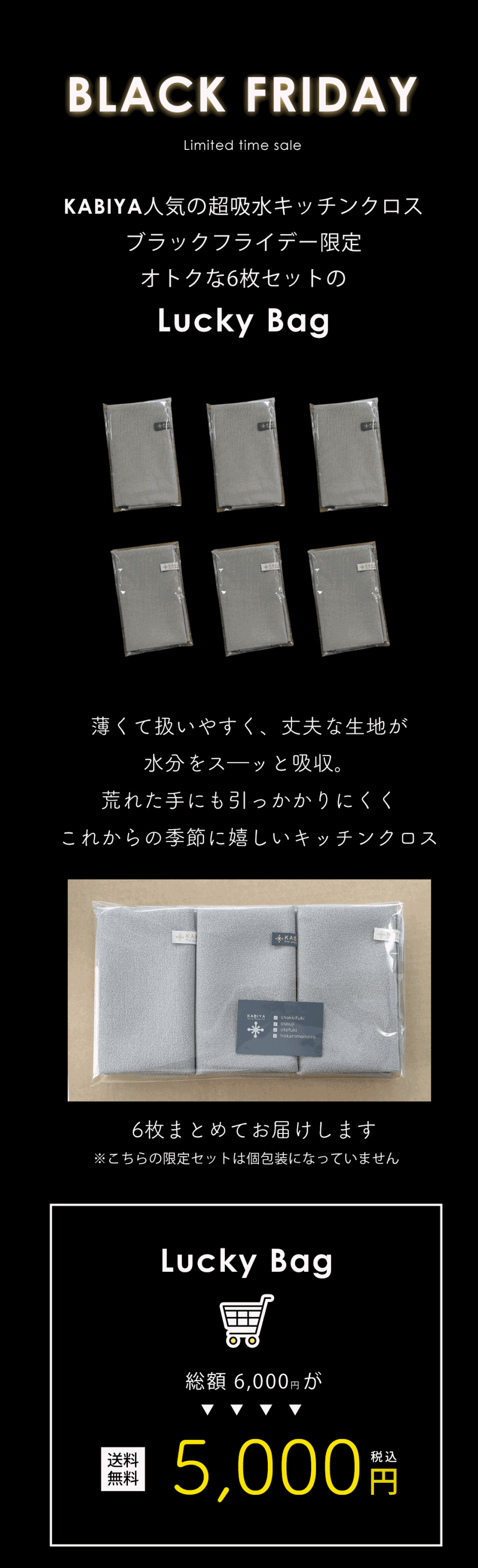 2026 期間限定福袋 KABIYA人気のキッチンクロス 6枚セット 爆買