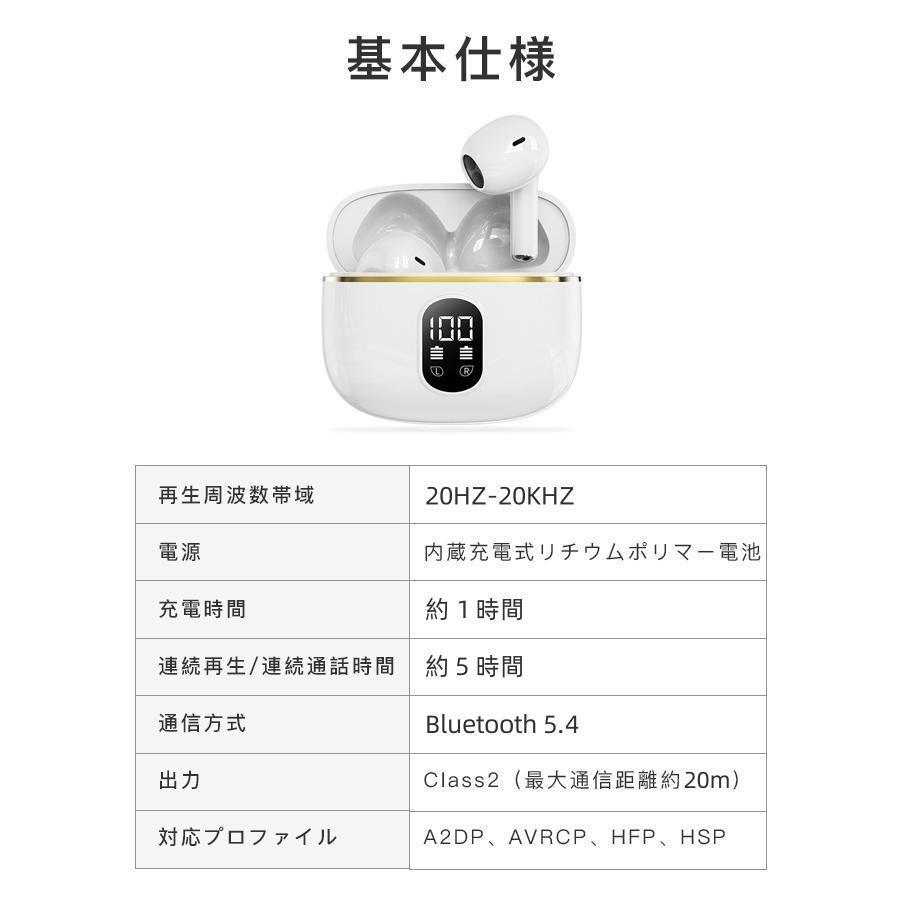 ワイヤレスイヤホン Bluetooth5.4 高音質 led表示 イヤホン 3.6g超軽量 ブルートゥース ios android iphone16 ENCノイズ低減 残電表示 低遅延 片耳 両耳