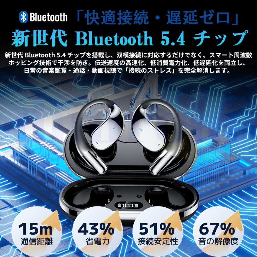 【Bluetooth5.4&自動ペアリング】データ伝送速度や通信距離、通信の安定性が飛躍的に向上し、従来の信号干渉、 音ズレ、音飛び、途切れなどの通信問題を有効的に抑え、遅延のないスムーズなWireless通信を実現しました。イヤホンにはメモリーバック接続機能があり、最初の接続を完了したら、再び使用する時は充電ケースからイヤホンを取り出すだけで自動的に接続されます。