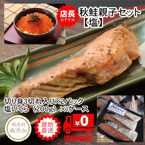 鮭親子セット【塩】 甘塩秋鮭切り身6切れ 塩いくら200g