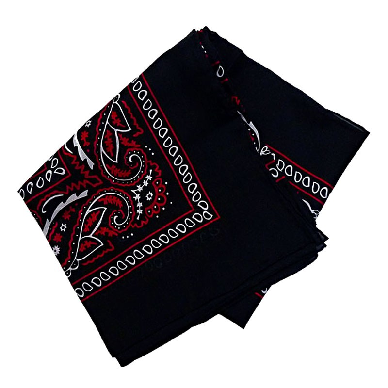 メール便可 シルク スカーフ バンダナ柄 黒 ブラック 大判スカーフ ワイルドラグ カウボーイスカーフ SCF075