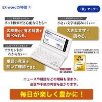 | 主な機能 | カラー液晶 クイックパレット付きパネル 選べる5段階文字サイズ メニューの文字サイズ切替対応 教科書体ズーム アイコン方式メニュー表示 レイアウト切り替え機能 すぐ出るプレビュー ミニ辞書 ジャンプサーチ(例文/成句検索対応) 複数辞書検索 / 便利な検索 国語系辞典 スペリング検索 / 慣用句検索 例文/成句検索機能(センタリング表示対応) スペルチェック/ワイルドカードサーチ/ブランクワードサーチ 日本語ワイルドカードサーチ/ブランクワードサーチ 日本語で英語例文検索 履歴機能(ヒストリーサーチ) 画面分割検索機能(さらに検索) 部首読み/部首内画数検索 図から検索 手書き入力 / ソフトキーボード入力 EX-VOICE機能 動画再生 マイク機能 スクロール(フリック対応) ガイド(凡例)機能 辞書登録機能(ホーム) 学習帳機能(カラーマーカー / カラー付箋 / カラーノート / カラー暗記カード) コンテンツプラス機能 カレンダー&時計機能 電卓機能(12桁) 開閉電源ON/OFF機能 オートパワーオフ レジューム機能 充電式エネループ対応 ブルーライトカット機能 無線通信機能(コンテンツ・ダウンロード用) | |