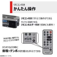 | ◆テンポコントロールが加わり、ますます便利なカラオケ機能 従来機能である「ボーカルダウン」「マイクエコー」ボタン、「キーコントロール機能」に加え、「テンポコントロール」が追加。カラオケとして楽しむことはもちろん、お稽古ごとの練習にも便利です。 ◆カセットからカセットにかんたんダビング! テープ→テープに高速ダビング。ダブルカセットを本体上部に搭載。見やすい大きなボタンやLEDランプで動作が一目でわかるのでとても使いやすいです。 ◆カセットテープにかんたんに録音できる テープ→テープ、CD→テープ、ラジオ→テープ、外部入力→テープ、マイク端子→テープと、簡単に録音ができます。 ◆フルオートストップ機能搭載 カセットテープを最後まで聞き終えたり、巻き戻しや早送りの操作でもカセットテープの終端になると自動的にボタン解除されるのでとっても便利です。 ◆レジューム機能で前回の続きを再生 前回停止した位置から続きを再生できる「レジューム再生機能」を搭載。再生位置を探す手間が省けます。 ◆テープセレクト付き ハイポジションテープを適正な音質で再生できます。 ◆デュエットを楽しめるように、デュエット用ジャックを付属 マイク2本(別売)を接続すれば、デュエットも楽しむことができます。 ※本機にはマイクは付属しておりません。また、ダイナミックマイク(2極モノラルプラグ)のみ使用可能です。コンデンサーマイクは使えません。 ◆便利なリモコン+リモコンホルダー付き リモコン付きで手元で簡単に操作ができ、更にリモコンホルダーがついているのでリモコンの置き場所に困りません。 【寸法/仕様】 ■CDプレーヤー部 チャンネル数:2チャンネルステレオ サンプリング周波数:44.1kHz メディア:CD、CD-R/RW(CD-DAフォーマット/MP3オーディオファイルで記録された音楽ディスク) ■ラジオ部 受信周波数: ・FM:76.0〜108.0MHz ・AM:531〜1,710kHz ■カセットテープレコーダー部 トラック方式:4トラック、2チャンネル 録音方式:ACバイアス録音 消去方式:マグネット消去 早送り・巻き戻し時間:約2分(C60) 推奨テープ:ノーマルカセットC60 ■共通部 電源:AC100V 50/60Hz、DC9V、単2形乾電池×6本(別売) スピーカー:φ8cmコーン型8Ω×2 実用最大出力:3.0W+3.0W(JEITA) 入出力端子(AUX): ・外部入力/ヘッドホン出力:φ3.5mmステレオミニジャック ・マイク入力:φ3.5mmモノラルミニジャック 消費電力:28W 電池持続時間: ・TOSHIBA単2形アルカリ乾電池使用時 CD再生時:約10時間 ・ラジオ受信時:約12時間、テープ再生時:約9時間 最大外形寸法: ・351(幅)×141(高さ)×203(奥行)mm(突起物含まず) ・356.5(幅)×147(高さ)×229.5(奥行き)mm(突起物含む) 質量:約2.6kg(乾電池含まず)/約3.0kg(乾電池含む) 付属品 電源コード、リモコン、リモコンホルダー、デュエット用ジャック、保証書付取扱説明書 メーカー:TOSHIBA(東芝) 発売時期:2024年02月 JANコード:4560158876606 【TOSHIBA】【カセットテープ同士も高速ダビング】 |