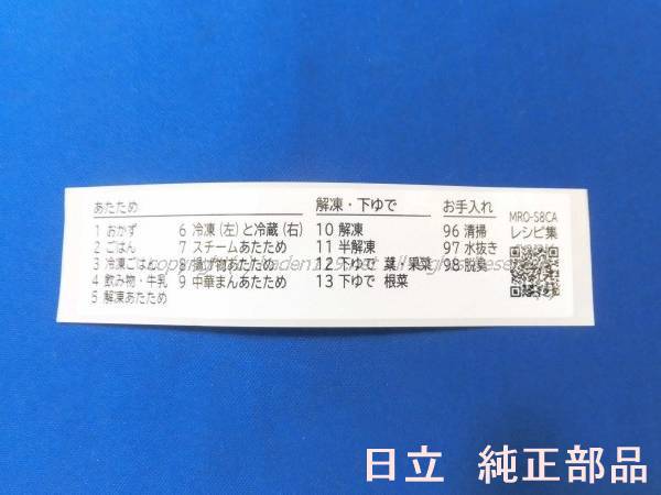 【ネコポス対応品】日立電子レンジ メニューシール(W)■MRO-S8CA-002