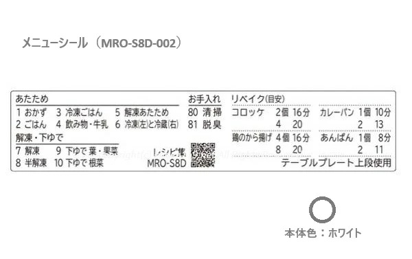 【ネコポス対応品】日立電子レンジ メニューシール(W)■MRO-S8D-002