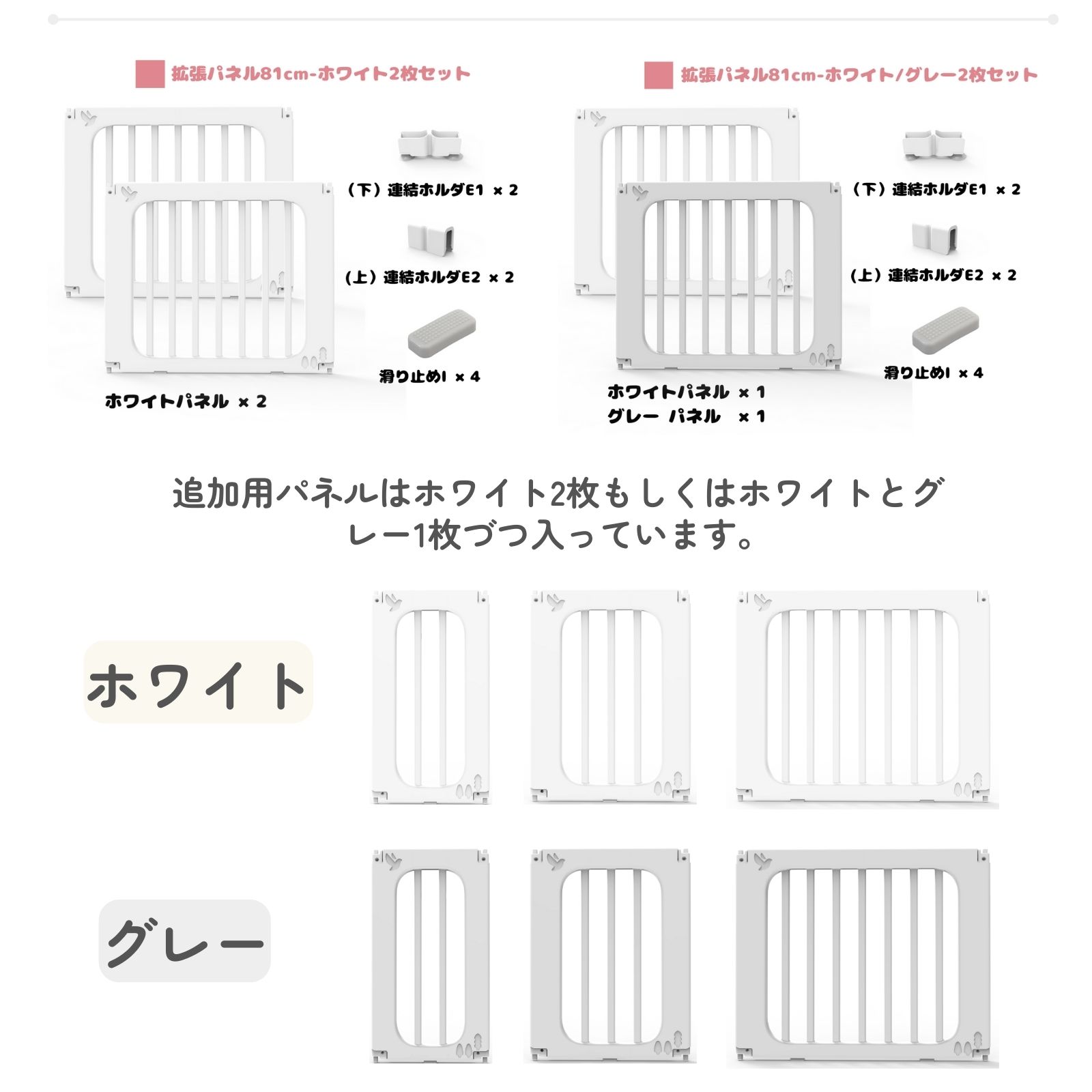・81cmパネル(2枚入り):81cmパネル(2枚)/「下」連結パーツ(2個)/「上」連結パーツ(2個)/滑り止め(4個)