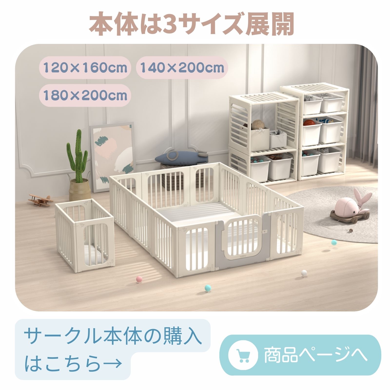 5waysベビーサークル:収納棚、ベビーフェンス、ベビーゲートを変形すること可能です。