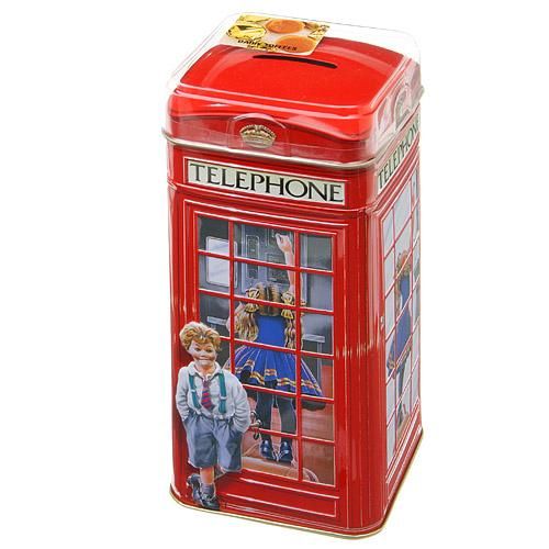 [輸入お菓子]缶入りトフィー缶 テレフォンBOXチャーチル貯金箱