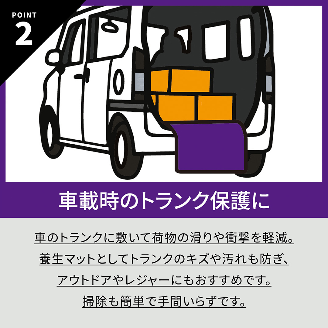 2.車載時のトランク保護に車のトランクに敷いて荷物の滑りや衝撃を軽減。