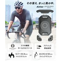 商品情報 クイックマウント(タイプB)| クイックマウント特徴 | アルミ製クイックマウントと強化樹脂製キャッチ、ナットは極限まで精度を高め、走行振動にもしっかりと姿勢を保つ安定感を実現。 いつでも自由自在に縦横、角度の調整が可能。 工具は不要。 自転車のサドルと同じレバーでマウントを固定できます。 径変換ラバーアタッチメントはゴム材質を使用し、広げてハンドルに付けるだけの簡単取り付け。 落として紛失する事もありません。摩擦係数が上がり、より強力にハンドルに固定されます。 スマホのみならず、スマホホルダーごといつでも簡単に丸ごと付け外し。 |