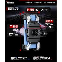 | 元祖クイックホールドの後継モデル | 地球上で最も早く片手でスマートフォンの付け外しが可能なスマホホルダー。スマホを押し付けるだけで瞬時にホールドし、両脇のリリースレバーを握るだけで開放します。「Airアブソーバーの取り付けは難しそう」、「初代クイックホールドが好きだけどカメラの出っ張りのせいで使えない」、「アームをロックして不測の事態に備えたい」という方にオススメなモデルの最新作クイックホールド2(Airアブソーバー)/KDR-M11CPJです。 |