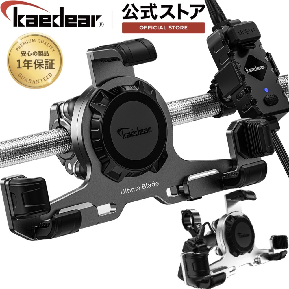 | 商品仕様 | ■ホルダーサイズ:横幅128.3〜193mm、縦幅65〜93mm、厚さ19mm以下(付属のトルクスボルトで爪を外してアダプターを付け替える事で爪の高さが調整できます。) ■材質:アルミニウム合金(本体、マウント)、ポリカーボネート(中央パネル)+シリコン(保護カバー) ■セット内容: 【クランプマウント】 本体(クランプ22mm)、径変換アタッチメント(12.0/16.0/19.0)、六角レンチ+トルクスレンチ、ラバーテープ ■取扱説明書(オンラインのみ):環境負荷の軽減を目指した脱炭素化への取り組みとして、紙媒体での同封を控えさせていただいております。Kaedear公式サイトの各商品ページから閲覧またはダウンロードが可能です。 ※充電付きタイプの場合以下も付属致します。(PAタイプ) 12Vアダプター(USB電源付き)、アダプターホルダー(バンド)、滑り止めテープ、SAEハーネス(ヒューズホルダー/ギボシ)、変換ハーネス(平型Y字/クワガタ端子)、結束バンド 【1インチボールマウント】 本体(1インチボール)、アルミ中間マウント(防犯ボルト仕様)、バーマウント(クランプ32mm /1インチボール)、径変換アタッチメント(12.0/22.0/25.4/28.6mm)、六角レンチ、トルクスレンチ、ラバーテープ、取り扱い説明書 ※充電付きタイプの場合以下も付属致します。(PAタイプ) 12Vアダプター(USB電源付き)アダプターホルダー(中間マウント用)、SAEハーネス(ヒューズホルダー/ギボシ)、変換ハーネス(平型Y字/クワガタ端子)、結束バンド |