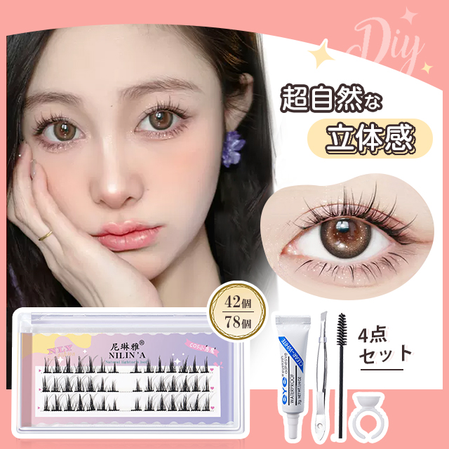 42/78個 3DEYESアイラッシュ まつげ セント 42個 78個 まつげエク つけまつげ ナチュラル ポイント ロング 手作りつけまつげ 4点セット 付け用セット