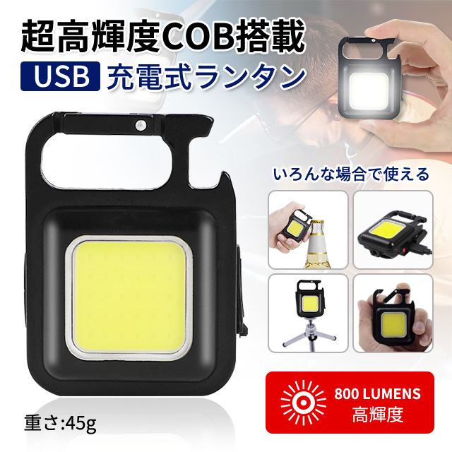 LED 投光器 懐中電灯 COB 作業灯 USB充電式 キーホルダー式 超ミニ 45g 小型 軽量 高輝度 3種点灯モード IPX4防水 強力磁石付き 緊急照明用 アウトドア用