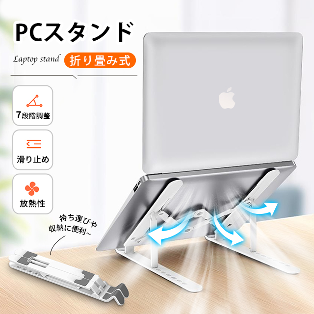 【改良品発売中】 ノートパソコンスタンド PCスタンド 進化版 折り畳み 机上 コンパクト収納 タブレット 角度調節 冷却 放熱 高さ 肩こり 首 手首