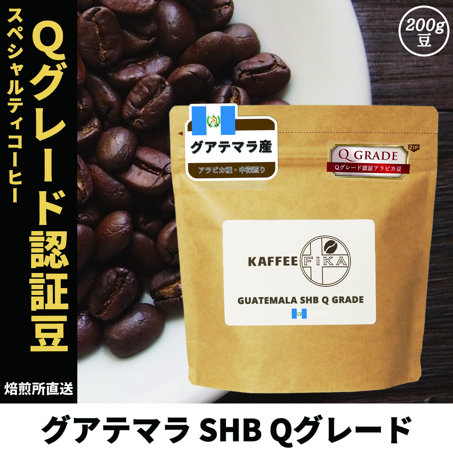 コーヒー豆 グァテマラ Qグレード SHB 深煎り 200g