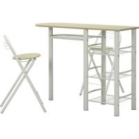 カウンターテーブル 対面 カウンターチェア 折りたたみ椅子 折り畳み 2脚セット 2人用 ホワイト 白 バーテーブル 本棚付き ハイテーブル バーカウンター 楕円