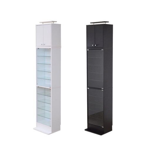 ガラスキャビネット アンティーク コレクション ショーケース 飾り棚 ラック 深型 ハイタイプ セット (本体+上置)