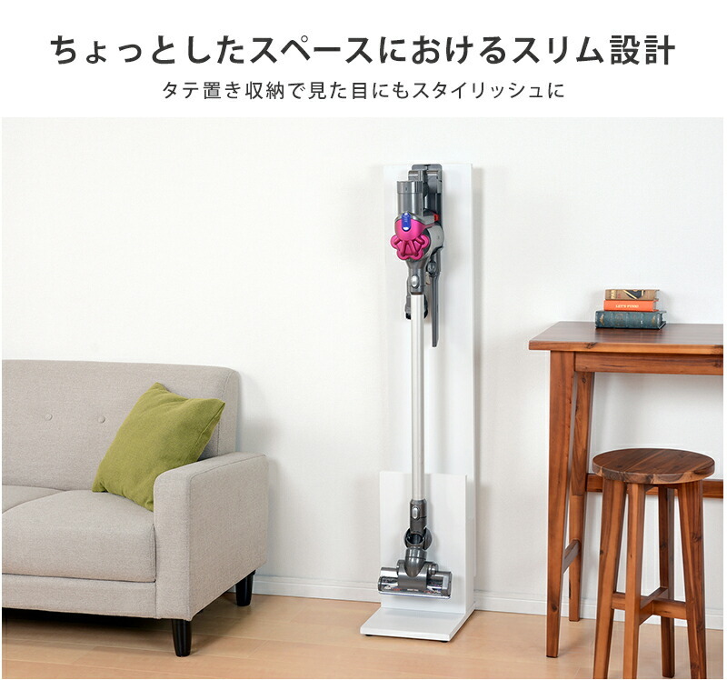 壁に穴を開けずにスティック型掃除機をスマートに収納。