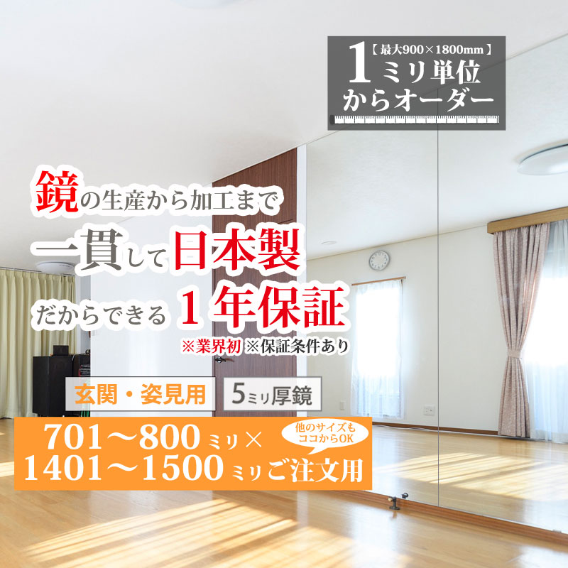 姿見鏡 全身 壁掛け ウォールミラー オーダー 日本製 ガラス 701-800 mm × 1401-1500 mm ご注文用 大阪 鏡販売 1年保証
