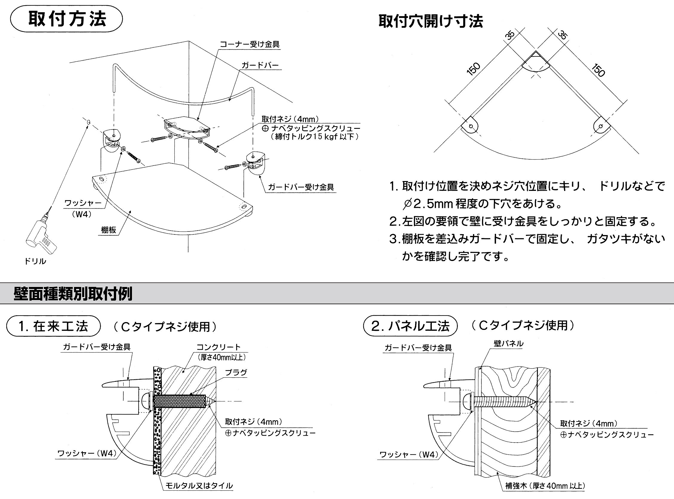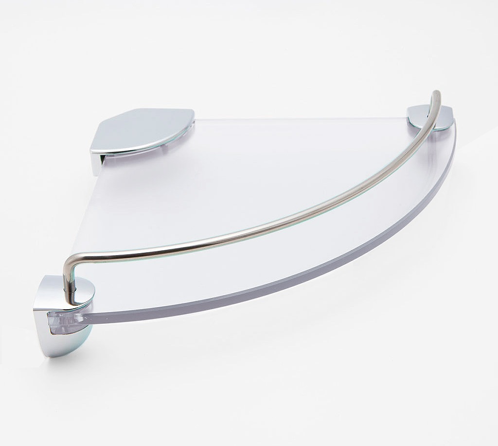 ステンレス製コーナーシェルフバーはステンレス、ブラケットと棚板は樹脂製のシンプルモダンなデザインのコーナーシェルフで、バスルームや洗面スペース、トイレなどの空間に調和します。水や湿気に強く丈夫なため水回りはもちろん、浴室内でのご使用も可能 な化粧棚です。