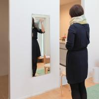 スタンドのない壁に貼るタイプの鏡は壁と一体になり場所をとらないのでとても省スペースでお部屋を広々使うことができます。毎日のお出かけ前の身だしなみチェック、エクササイズをする時や着付けやゴルフのスイングチェックも全身映る鏡の前で行うのがおススメです。