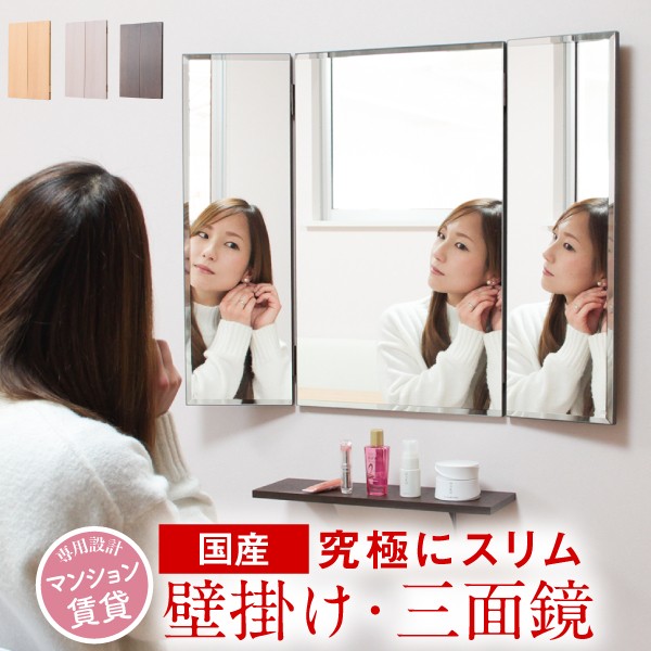 【かがみのかたち 壁掛けドレッサー 三面鏡 】