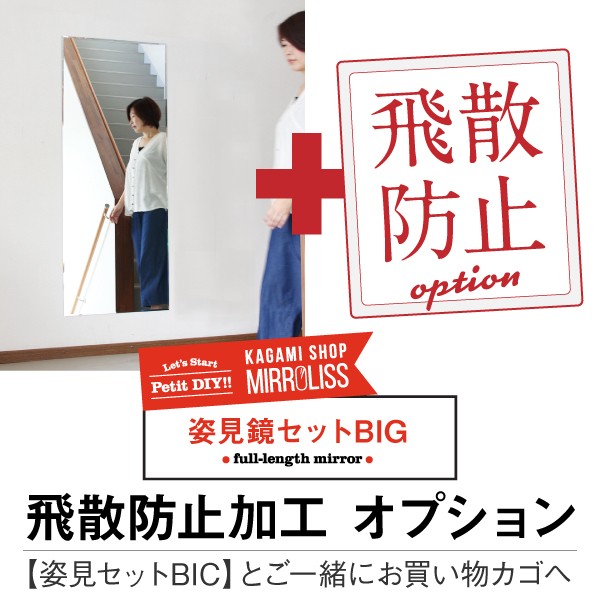 姿見 鏡 ミラー 飛び散らない 飛散防止 オプション BIG【飛散防止・テープ加工】