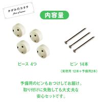 【サイズ】ピース : 直径約8mm高さ約6mm / ピン : 長さ20mm【入数】白ピース4点 /石膏ボードピン14本(本使用12本+予備2本)【安全荷重】1ピースあたり7kg