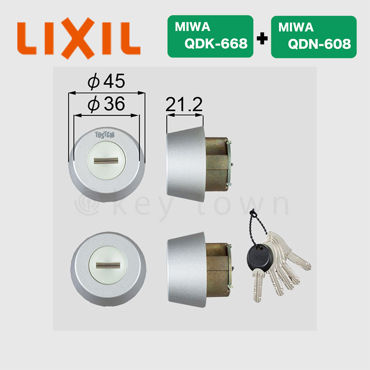 LIXIL リクシル TOSTEM トステム ジエスタ2 フロント刻印[QDN-608 QDK668] シルバー 2個同一セット シリンダー刻印【写真TOSTEM→商品LIXIL】
