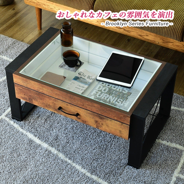 ガラステーブル ビンテージ風 ヴィンテージ ヴィンテージ風 ビンテージ アメリカンヴィンテージ アンティーク インダストリアル 木製 木目 木目調 おしゃれ 収納 お洒落 黒 ブラック ダークブラウン ブラウン 茶色 茶 脚 アイアン ブラックアイアン スチール 鉄 木 ソファ 二人暮らし ひとり暮らし ノートパソコン 四角 ガラス天板 ガラストップ 雑貨 重厚感 勉強 パソコン 引き出し付 ひきだし リビング 見せる収納 木材 pc コレクション 強化ガラス天板 ラック リモコン ディスプレイ 雑誌